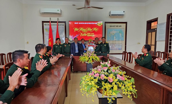 Phát biểu chúc Tết, đồng chí Bí thư Thành ủy đã thông tin tới cán bộ, chiến sĩ Ban Chỉ huy quân sự thành phố những kết quả nổi bật về tình hình phát triển kinh tế - xã hội của thành phố năm 2023; đồng thời, ghi nhận, biểu dương những kết quả Ban Chỉ huy quân sự thành phố đã đạt được trong năm qua, đặc biệt là công tác quốc phòng an ninh trên địa bàn bảo đảm môi trường thuận lợi để phát triển kinh tế xã hội của thành phố. Yêu cầu lực lượng vũ trang thành phố tiếp tục quán triệt sâu sắc và thực hiện hiệu quả các chỉ thị, nghị quyết của Đảng về nhiệm vụ quân sự, quốc phòng trong năm 2024; chủ động tham mưu Thành ủy, UBND thành phố triển khai thực hiện tốt các nhiệm vụ quân sự quốc phòng địa phương. Trước tiên, có phương án sẵn sàng chiến đấu, không để bị động bất ngờ, nhất là trong dịp Tết Nguyên đán Giáp Thìn 2024; chuẩn bị tốt cho lễ giao nhận quân, giao quân hoàn thành chỉ tiêu; …