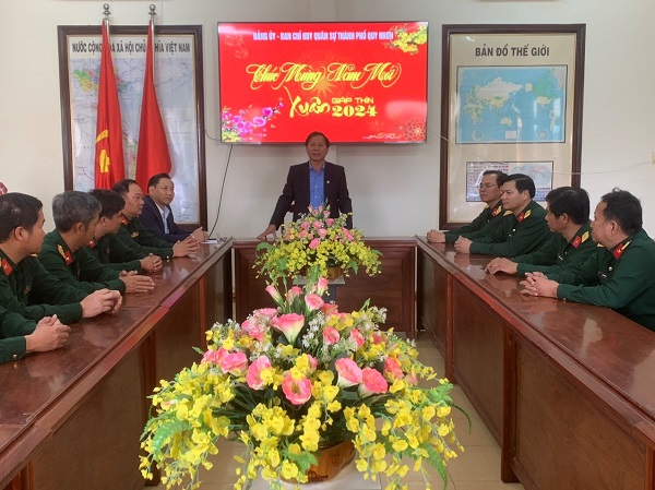 Chiều ngày 30/01/2024, đồng chí Nguyễn Văn Dũng, Ủy viên Ban Thường vụ Tỉnh ủy Bình Định, Bí thư Thành ủy Quy Nhơn đến thăm, chúc Tết Nguyên đán Giáp Thìn 2024 tại Ban Chỉ huy quân sự thành phố Quy Nhơn. Cùng đi có đồng chí Đỗ Văn Định, Thành ủy viên, Chánh Văn phòng Thành ủy.