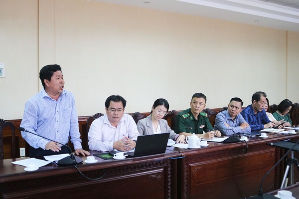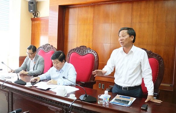 Đ/c Nguyễn Tấn Nghĩa - Chủ tịch HĐQT, Giám đốc Công ty CP Môi trường Bình Định báo cáo các công việc của đơn vị tại cuộc họp