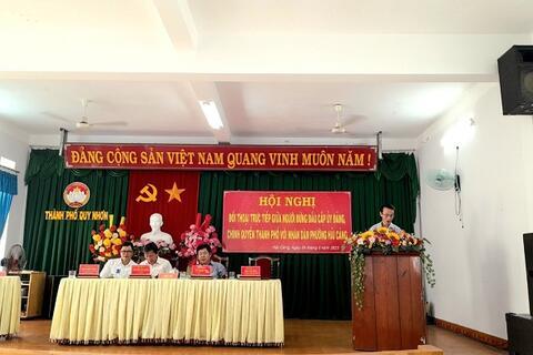 Đại biểu HĐND tỉnh và thành phố tiếp xúc cử tri phường Nhơn Bình, thành phố Quy Nhơn sau kỳ họp thứ 11 Ngày đăng: 26/08/2023 | 00:00 | Lượt xem: 7