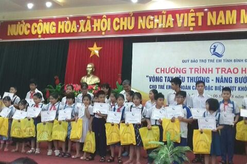 Trẻ em Quy Nhơn nhận học bổng chương trình “Vòng tay yêu thương – Nâng bước đến trường”